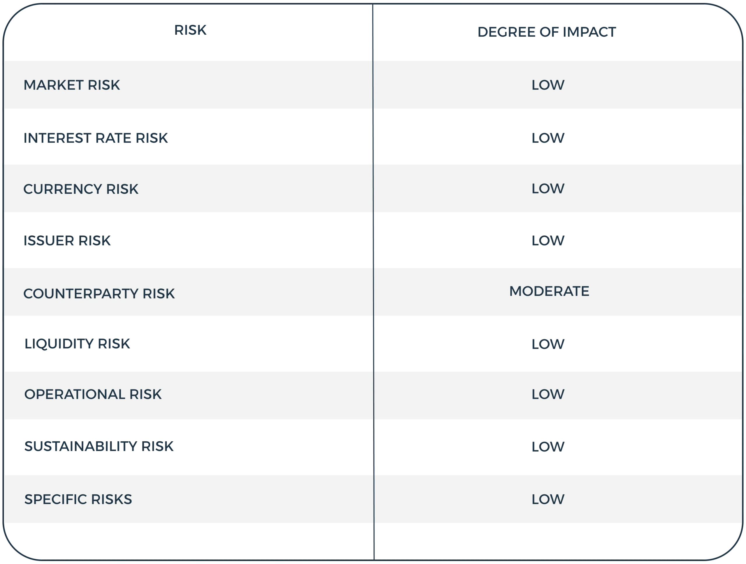 Aligned with a conservative investment strategy, the primary objective of the Vista Euro Cash UCITS Fund is to enable its members to achieve a stable return through responsible and professional management, while maintaining a low level of risk and the highest possible level of liquidity of assets. The fund’s assets will, in accordance with legal limitations, be primarily invested in transferable securities, money market instruments, and short-term cash deposits denominated in euro.