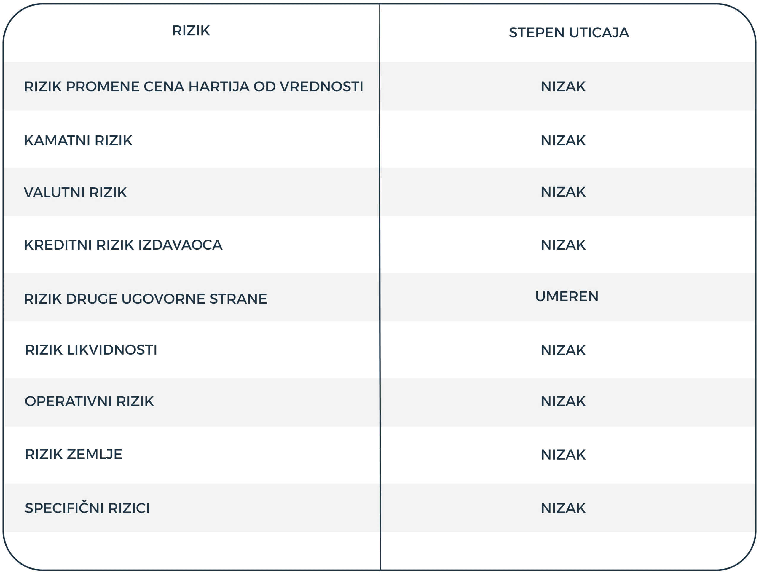 Rizik vezan za Fond sa stepenom uticaja